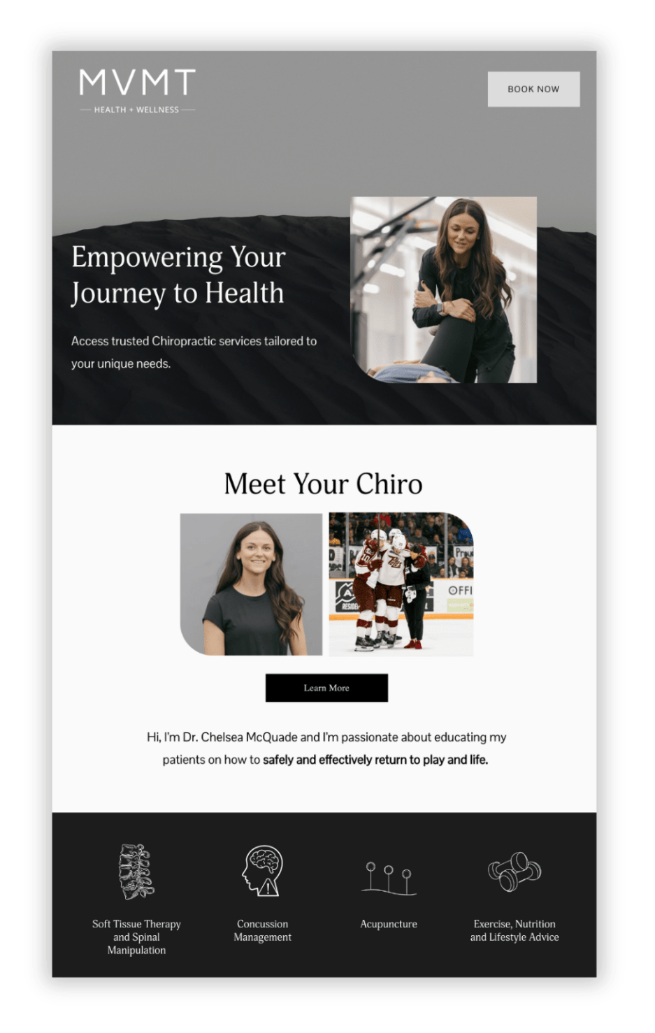 The brief: A chiropractor offering in-person and virtual appointments required branding assistance (including logo, typography, and colour palette), a complete website design, blog creation, and a booking calendar so visitors can make appointments, and receive instant confirmation and reminder emails.